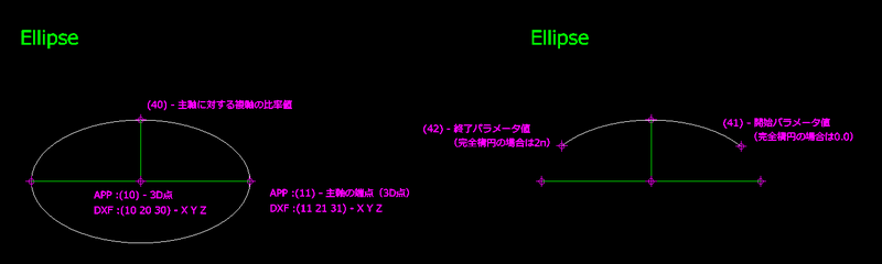 楕円・楕円弧(ELLIPSE)のエンティティグループ コード