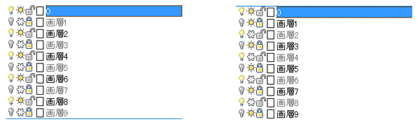 1. コマンドを実行します。 * レイヤーのフリーズ状態が反転します。(現在画層を除く)