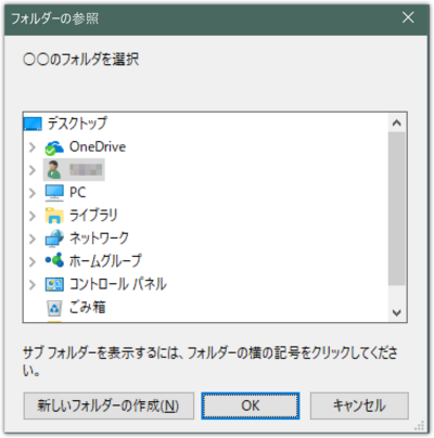 - フォルダ参照ダイアログを表示してフォルダのパスを取得する