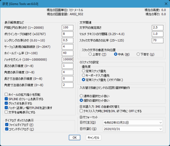 Gizmo Tool 関連機能の動作設定と、CAD の設定で GUI からのアクセスが無いものをまとめて設定するコマンドです。