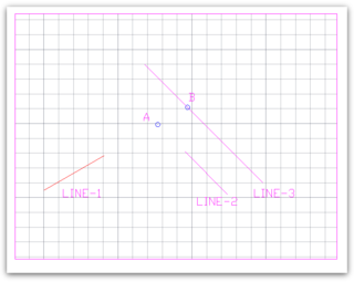 渡された ExtendOption が acExtendThisEntity の場合、LINE-1 を延長した場合に Line-3 と交差する点として、点 B が返る。ExtendOption が acExtendOtherEntity の場合、Line-3 が延長されても、Line-1 とは交差しないためデータは返らない(nil)。 交点の種類が acExtendBothEntities で、パラメータの図形として Line-2 が渡された場合には、点 A が返る。ExtendOption が acExtendNone で、パラメータの図形が Line-2 の場合、データは nil 。